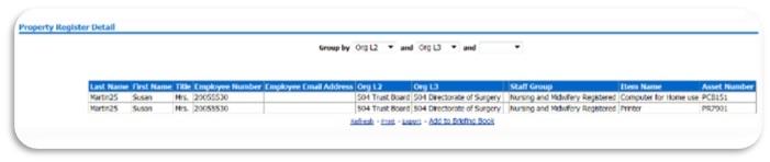 Organisations should fully utilise the property register functionality as it ensures that all organisational property is recorded and subsequently returned in good time, avoiding unnecessary replacement costs. The capability is flexible and easy to use by employees, managers and selected departments.