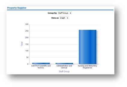 This analysis is designed to show the number of Property Register entries grouped by Staff Group or Organisation Levels 1-4. An Effective Date Prompt is available for users to set as required.