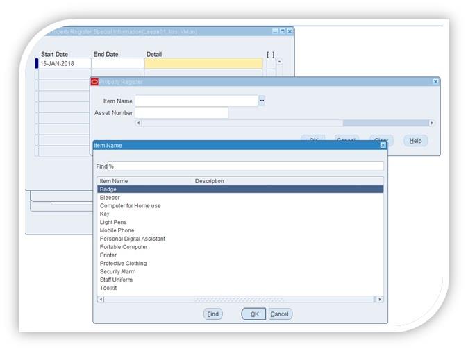 - Property Register – a stand-alone URP that can be given to specific departments that allocate property e.g. IT Department;