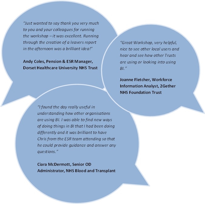 The Business Support Team of Gloucestershire Shared Services (hosted by Gloucestershire Hospitals NHS FT) adopted the full use of ESR BI shortly after its release in April 2013. Due to this increased level of exposure, the organisation has developed a team of very knowledgeable BI users that have a wide range of knowledge and experience using the national dashboards and through the development of their own local reports. Hayley Harper-Smith, Head of Payroll and Payments at Gloucestershire Shared Services who heads up this team recently ran an interactive BI workshop to share the knowledge and experience their team has gained with colleagues in the South West region.